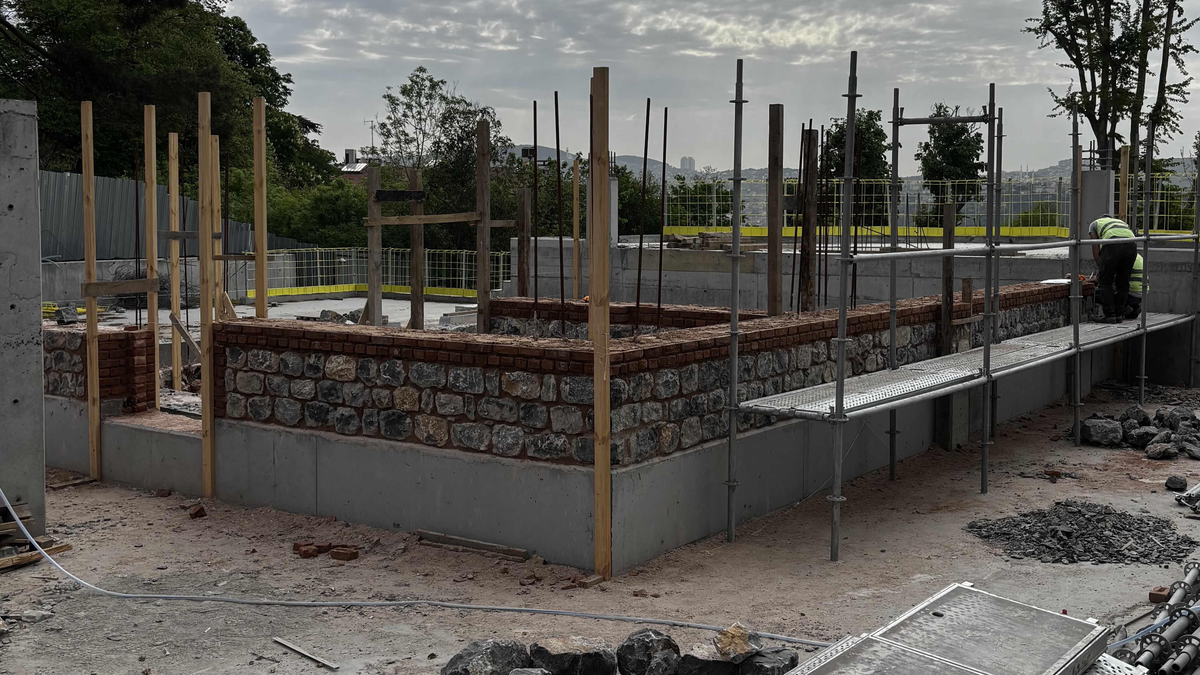 İstinye’de tarihi ve kültürel değeri yüksek olan Mehtabiye Köşkü’nün rekonstrüksiyon sürecindeki kaba inşaat aşamalarını üstlendik. Mevcut bodrum kat betonarme taşıyıcı sistemi tamamlandıktan sonra devralınan projede; zemin kat taş duvarlarının örülmesi, çevre istinat duvarlarının inşa edilmesi ve geleneksel volta döşeme tekniği ile tavan sisteminin oluşturulması dahil olmak üzere tüm kaba inşaat ve çelik konstrüksiyon işleri titizlikle yürütülmüştür.